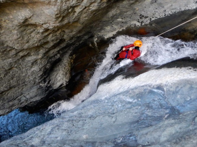Le parcours continue après le « médian » dans un encaissement au plus proche de l’actif. Rappels, sauts, toboggans loin des regards. 45mn d’approche et 25 mn de retour. Parcours sportif et soutenu.